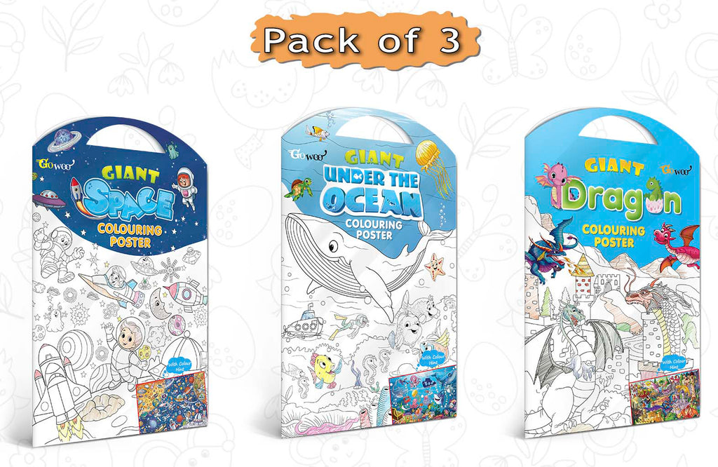 Are you looking for the perfect gift to ignite your child's imagination? Look no further than the Gowoo Combo Pack featuring three giant coloring posters that will transport your child to the depths of the ocean, the vastness of outer space, and the world of dragons.