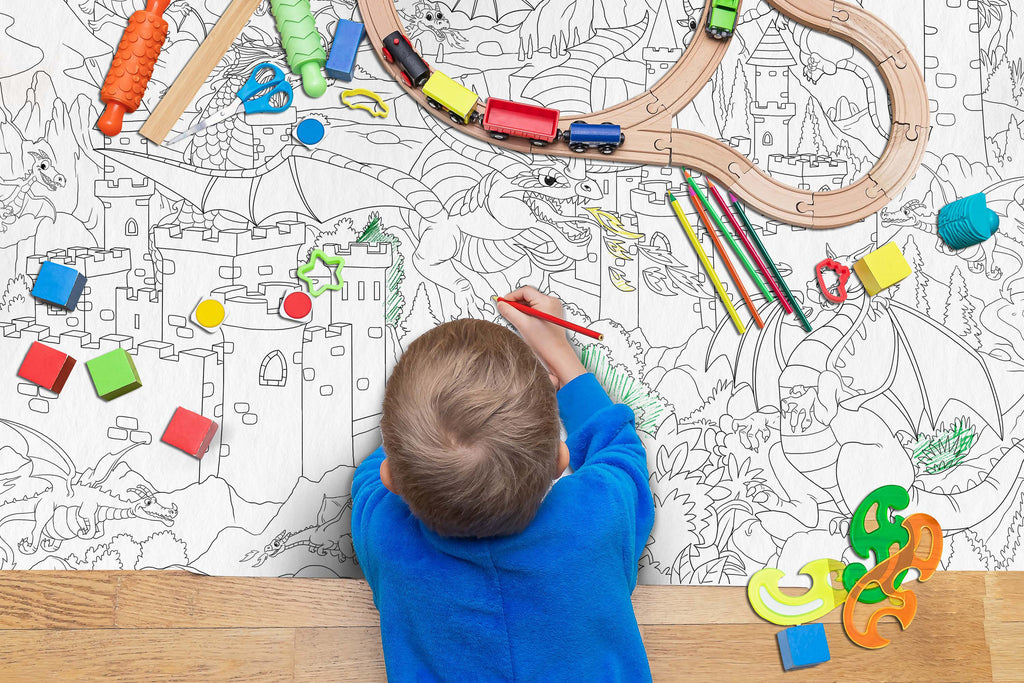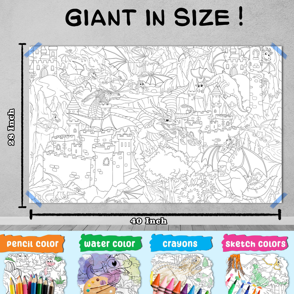 And last but not least, the Giant Dragon Coloring Poster brings the magical world of dragons to life, featuring majestic dragons in flight and at rest. Your child will love using their imagination to create vibrant and colorful dragons that are unique to their artistic vision.
