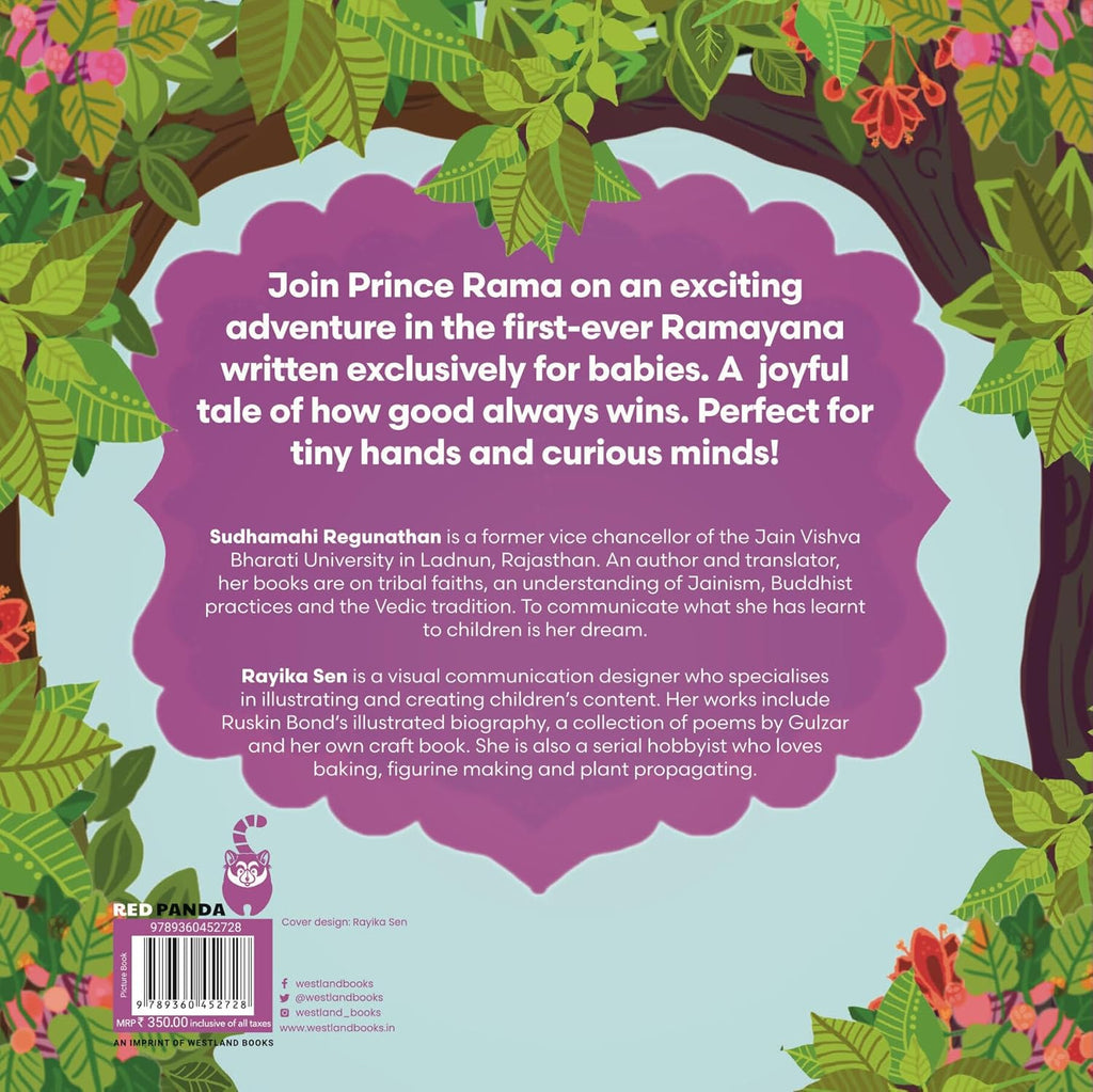 In the magical land of Ayodhya, brave Prince Rama lived with his parents and three brothers. When he grew up, he married the wise Sita. Soon after, they leave home to spend some time in the forest. Then—oh no! Naughty Ravana with his ten heads carried her away to Lanka. What happens next? How do Rama, his brother Lakshmana and their new friend, the mighty monkey Hanuman, find Sita? Join Rama on an exciting adventure in the first ever Ramayana written exclusively for babies aged 18 months to five years. A joyful tale of how the good always win that is perfect for tiny hands and curious minds.