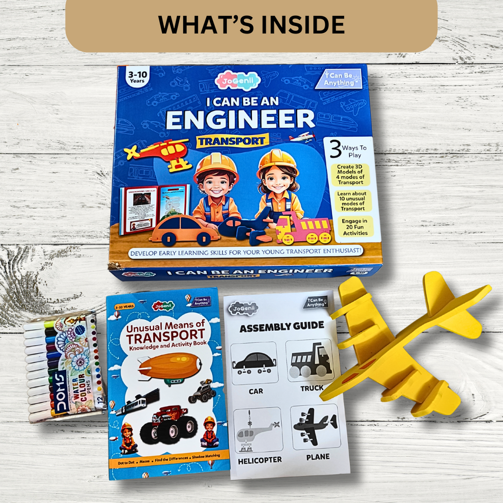 A STEAM-based activity box that lets kids explore the fascinating world of transport and engineering.
