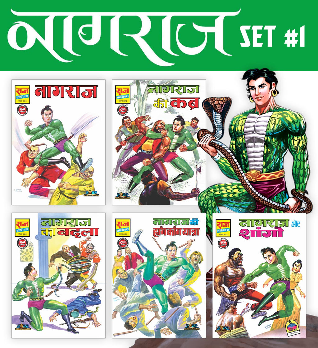 A set of bestseller vintage comics featuring India's #1 Superhero Nagraj, the snakeman. Relive the nostalgia and introduce kids of this generation to the iconic literature of the 90s. Embark on the adventures of Nagraj with these power packed comics.