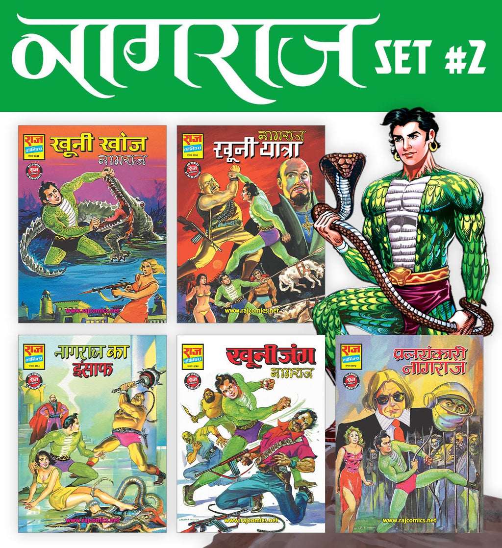 A set of bestseller vintage comics featuring India's #1 Superhero Nagraj, the snakeman. Relive the nostalgia and introduce kids of this generation to the iconic literature of the 90s. Embark on the adventures of Nagraj with these power packed comics.