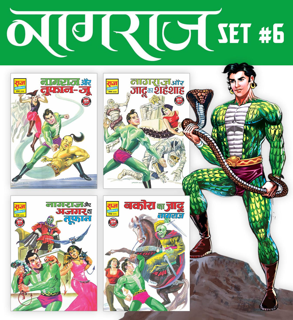 A set of bestseller vintage comics featuring India's #1 Superhero Nagraj, the snakeman. Relive the nostalgia and introduce kids of this generation to the iconic literature of the 90s. Embark on the adventures of Nagraj with these power packed comics.