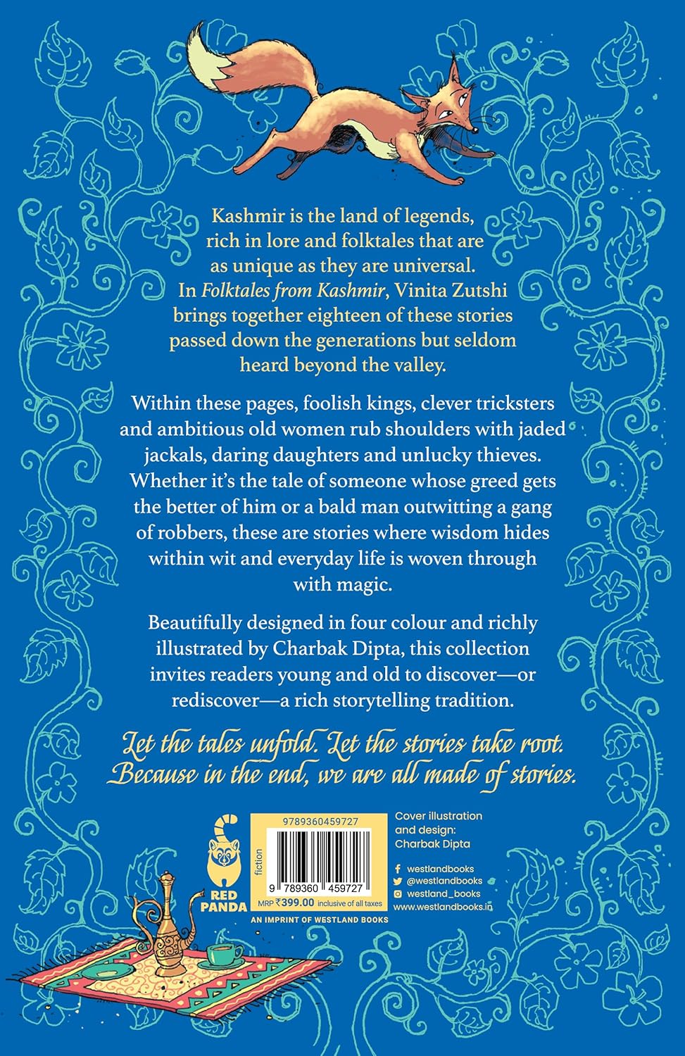 Vinita Zutshi brings together a rich collection of 15 timeless stories passed down through generations but seldom heard beyond the valley. Meet foolish kings and clever tricksters,cunning jackals and daring daughters, ambitious old women and unlucky thieves—all caught in a whirlwind of adventure, mischief and wisdom.
