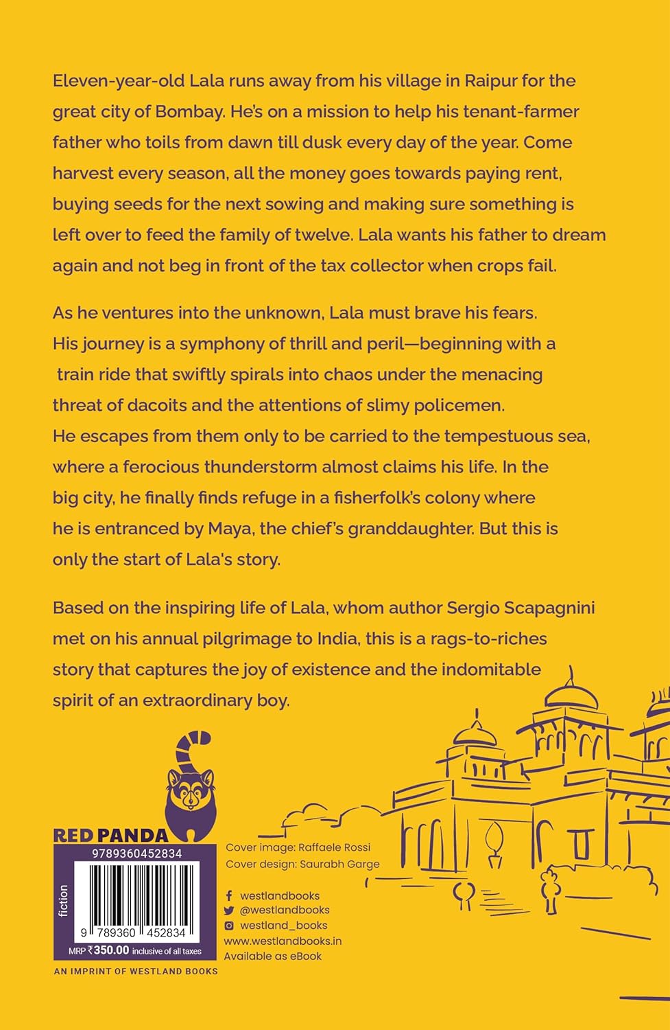 As he ventures into the unknown, Lala must brave his fears. Lala’s journey is a symphony of thrill and peril—beginning with a train ride that swiftly spirals into chaos under the menacing glare of dacoits and the attentions of slimy policemen. He escapes from them only to be carried to the tempestuous sea, where a ferocious thunderstorm almost claims his life. In the big city, he finally finds refuge in a fisherfolk’s colony where he is entranced by Maya, the chief’s granddaughter. But still greater experiences await Lala.Based on the inspiring life of Lala, whom author Sergio Scapagnini met on his annual pilgrimage to India, this is a rags-to-riches story that captures the joy of existence and the indomitable spirit of an extraordinary boy.