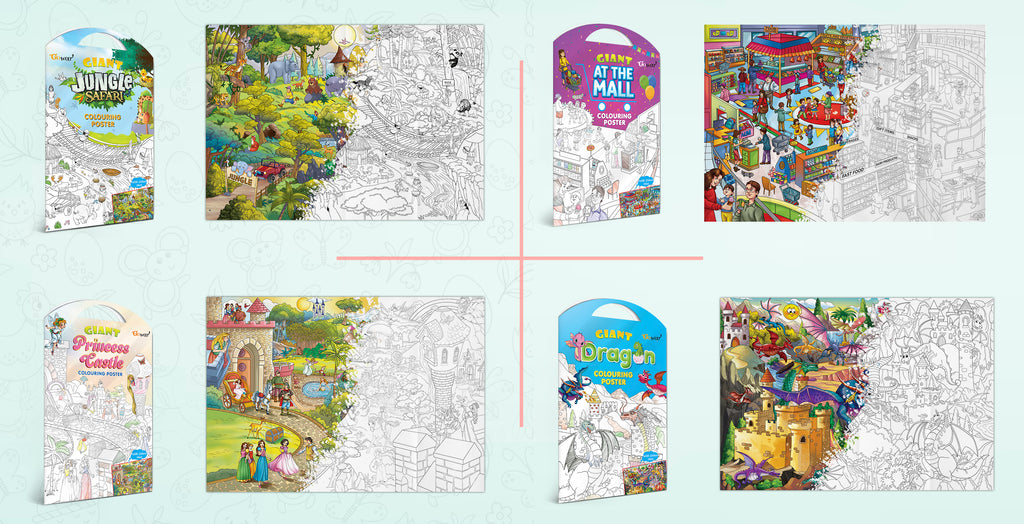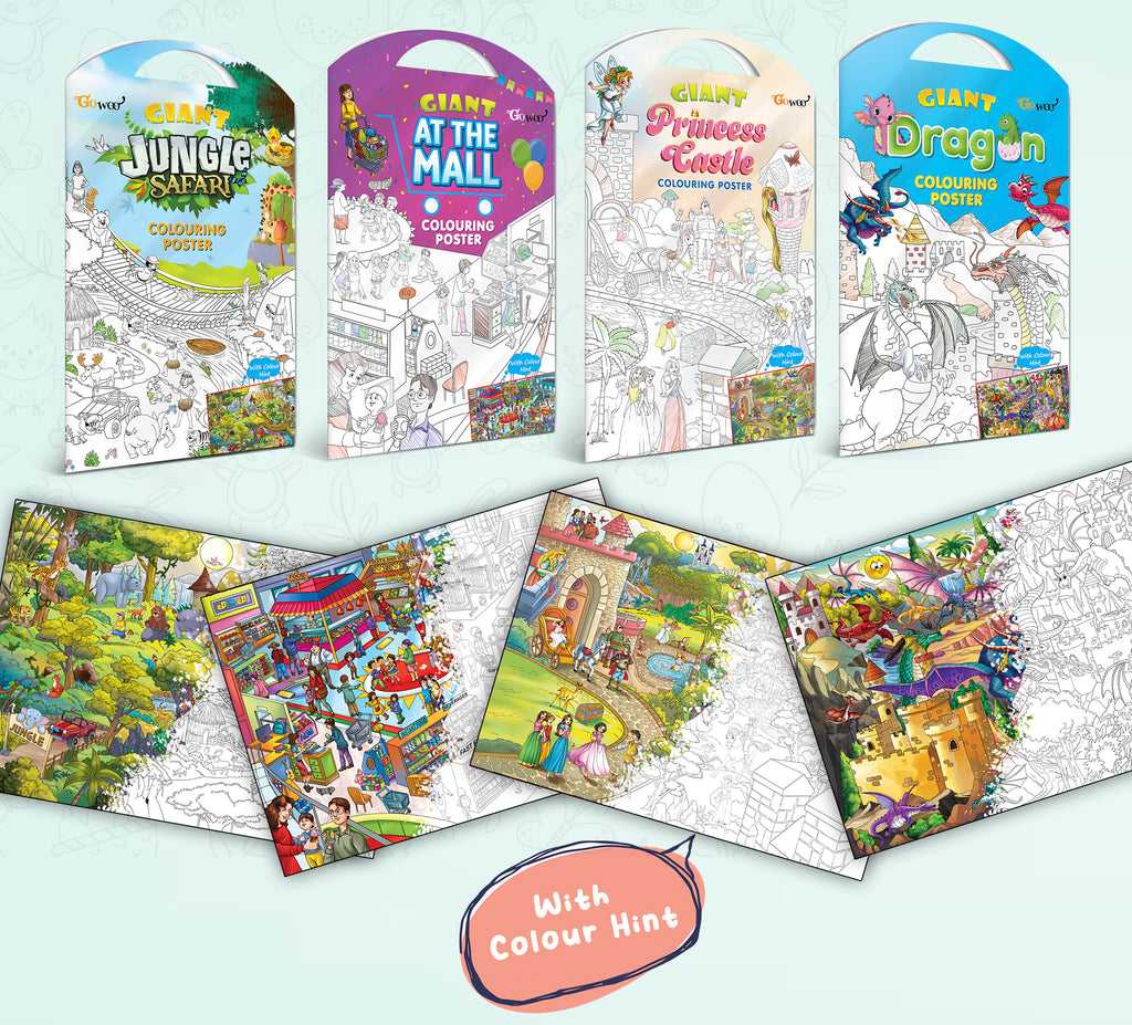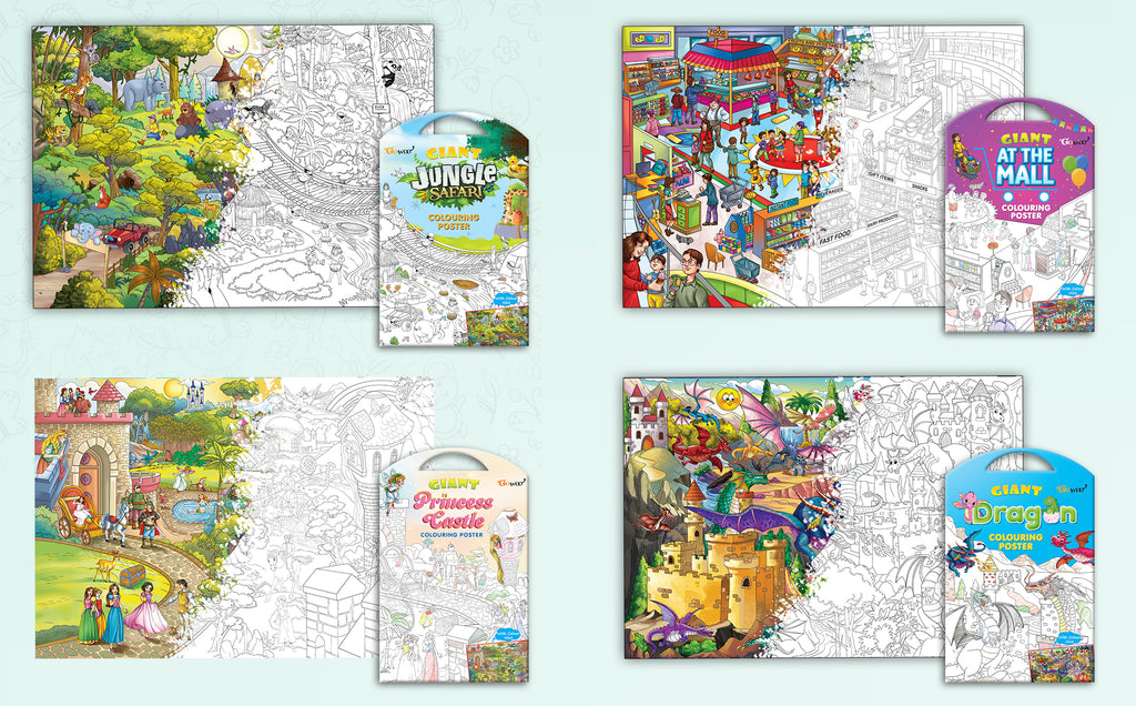 The Gowoo brand has introduced an exciting combo of four giant colouring posters, including the Jungle Safari, At the Mall, Princess Castle, and Dragon themes. These posters boast captivating and attractive illustrations that provide ample space for creative expression and measure 28*40 inches.