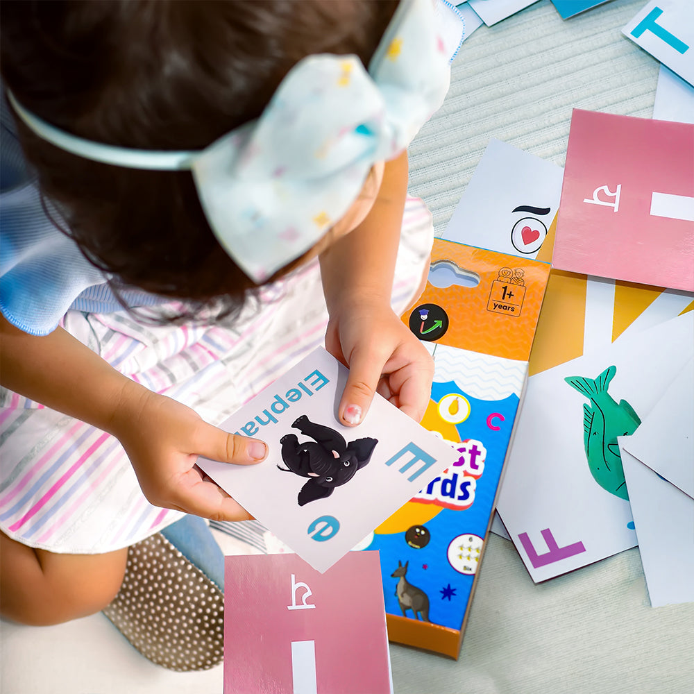 Little ones will enjoy learning their first Alphabets and Numbers with these bright cards. This card set has numerous attractive pictures which they will be delighted to look at to keep them engaged. The images are crafted out of high resolution and realistic prints for hours of fun reading. The soft padded cover is meticulously designed for little hands to hold. Spend and share hours of learning fun with your child, with this fabulous set!This set of fun and educational flash cards is the perfect tool to inspire toddlers and help them grow through play.