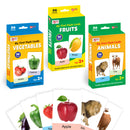 A pack of 108 colourful, double-sided flash cards to introduce pre-schoolers and toddlers to the concept of Fruits, Vegetables and Animals. It also includes activity guide and revision cards to make learning a fun-filled activity.