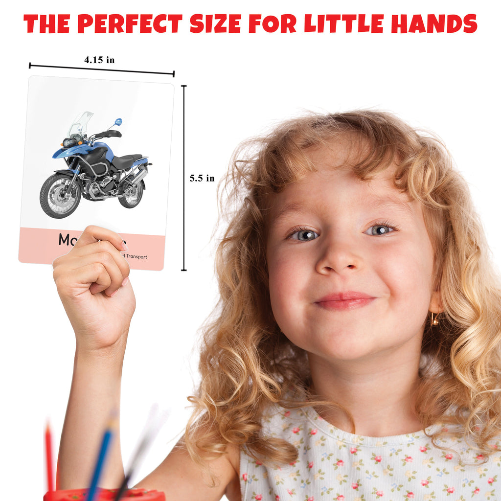 This box of 32 flash cards introduces pre-schoolers and toddlers to the concept of Transport. The cards are beautifully designed with lively images, word labels and also contain activity cards for revision.