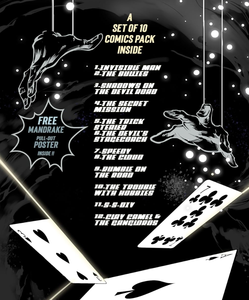 Since its inception, the adventure strip Mandrake the Magician has mesmerized its readers and been a publishing success story. Created by Lee Falk in 1934 for King Features Syndicate, it is still flourishing in papers around the globe. Mandrake comic books have been published in the United States, Canada, Australia, Brazil, Colombia, Denmark, El Salvador, Finland, France, Germany, India, Italy, Jamaica, Mexico, Norway, Portugal, Spain, Sweden and the United Kingdom. The boxset contain 10 Amazing story Book