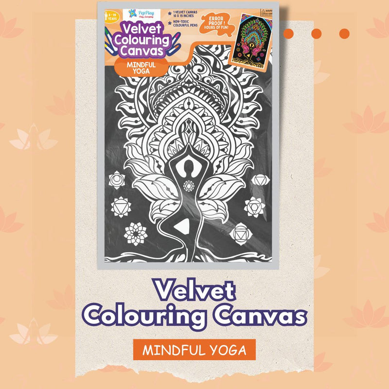 The PepPlay Velvet Colouring Canvas with a Mindful Yoga theme offers a unique and sensory colouring experience for both kids and adults. With calming yoga illustrations on premium velvet canvas, it’s not just an artistic activity but also a tactile and meditative one.