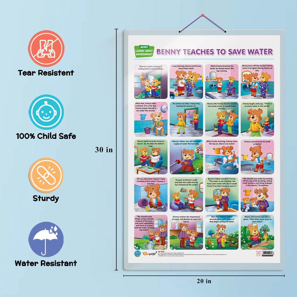 Enhance your child's language skills while instilling important environmental values with our remarkable educational wall posters: the 2-in-1 Phonics 1 and 2, Benny Learns to Recycle, and Benny Teaches to Save Water charts. Proudly presented by Gowoo, these visually appealing posters are the perfect addition to any room decor.