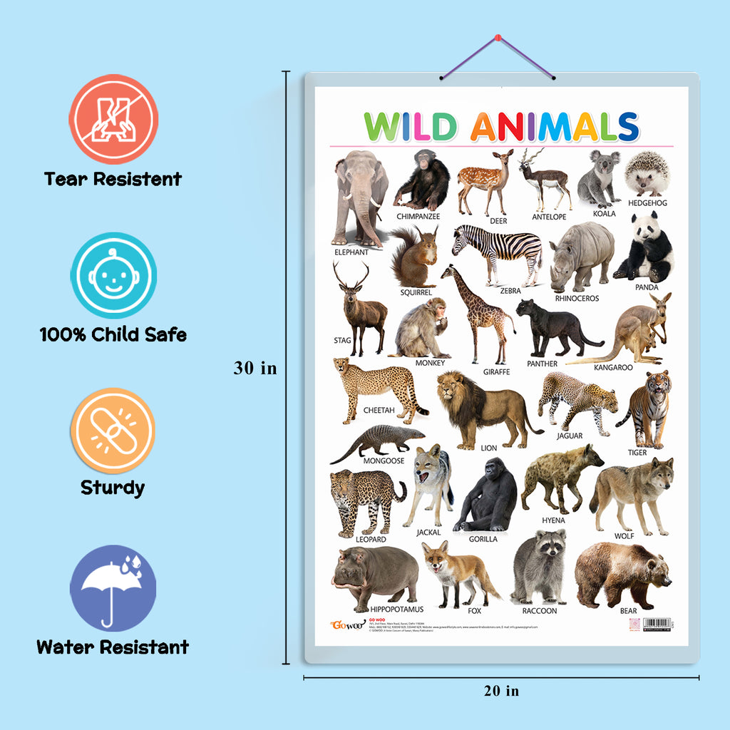 The Wild Animals chart takes children on a thrilling adventure through the animal kingdom. With captivating illustrations of lions, elephants, zebras, and more, this chart sparks their imagination and helps them learn about different species and habitats.